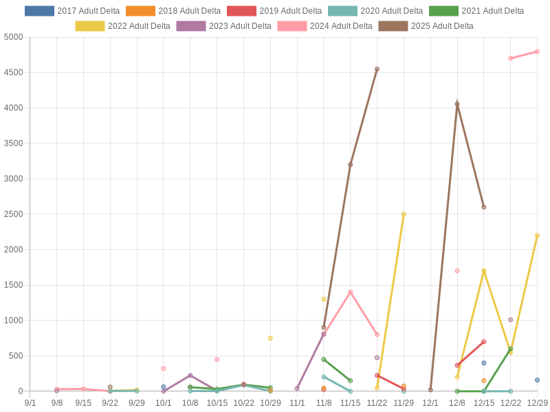 2022 was a special year, but otherwise, hatchery returns of Nooksack coho have been decent if not spectacular. 2024 could be another solid year, forecasted to be between 2022 and 2023. Get ready!
